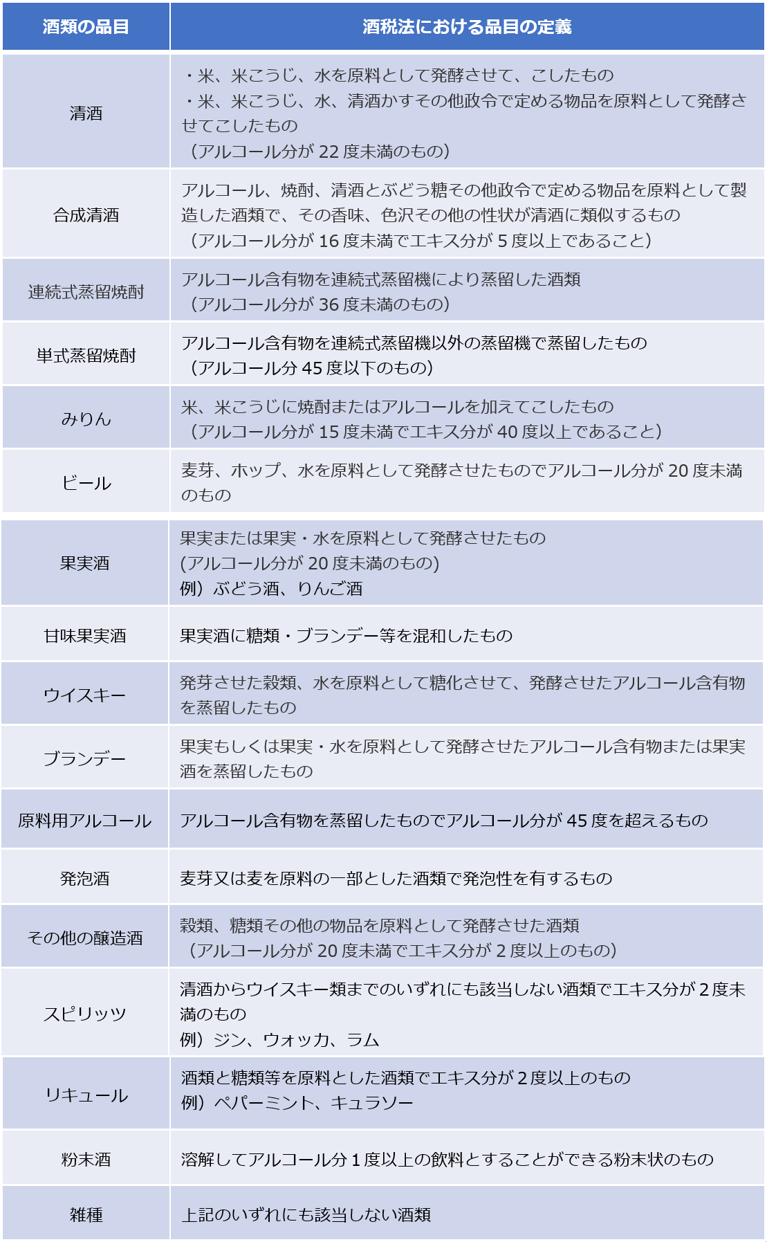 酒類の品目とは?